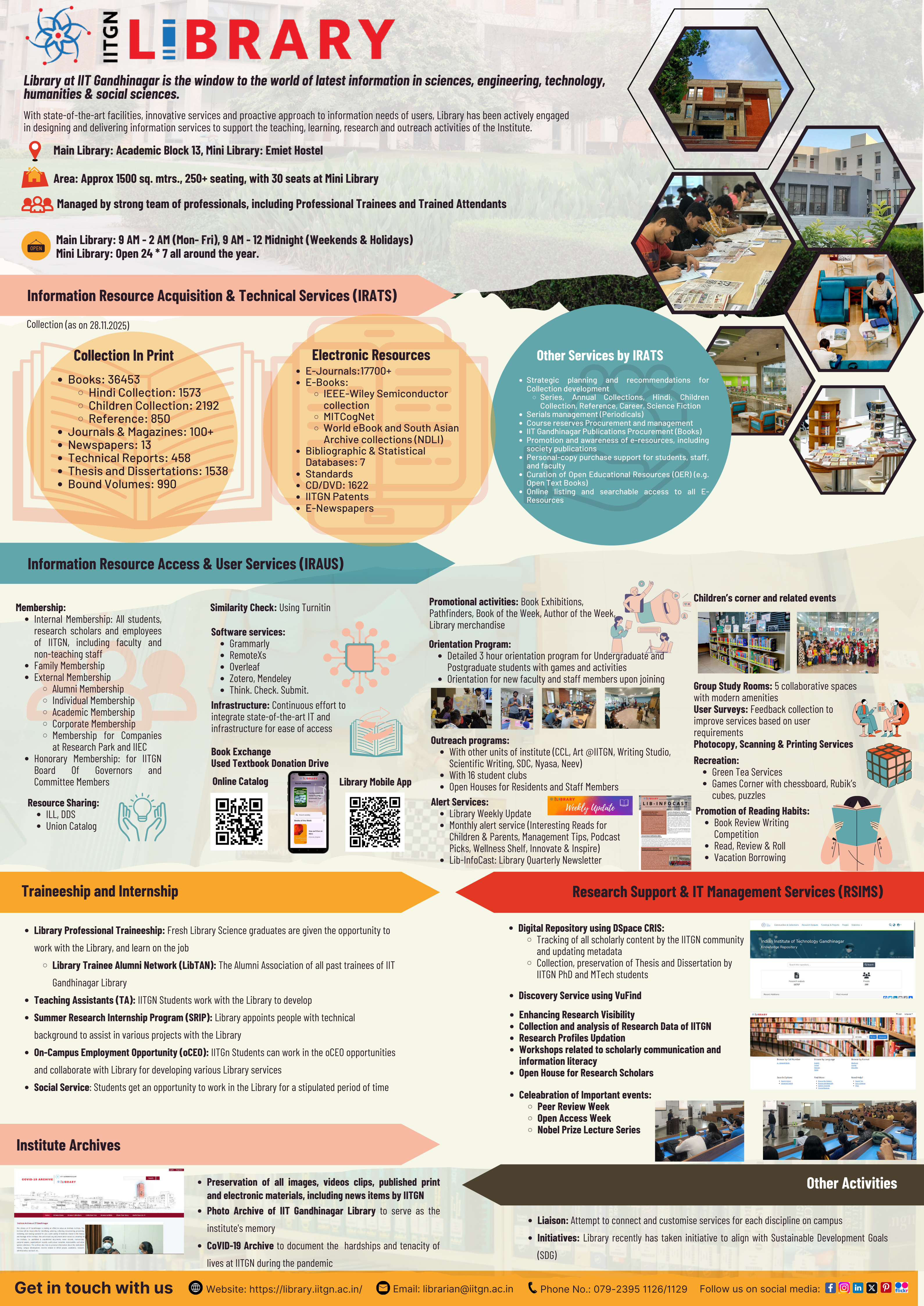 Library at IITGN extends its services for the entire IITGN community, including the staff members (administrative, technical, contractual, project and others). In addition to providing...